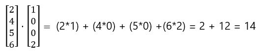 Mathematically, if we have a matrix U and a vector v, the matrix vector multiplication is denoted as Uv and is calculated as: