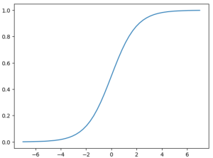 Let’s see how to implement the sigmoid function and use it. We can create an array with 51 values between -7 and 7 using np.linspace(-7, 7, 51). This is our z in the next snippet.