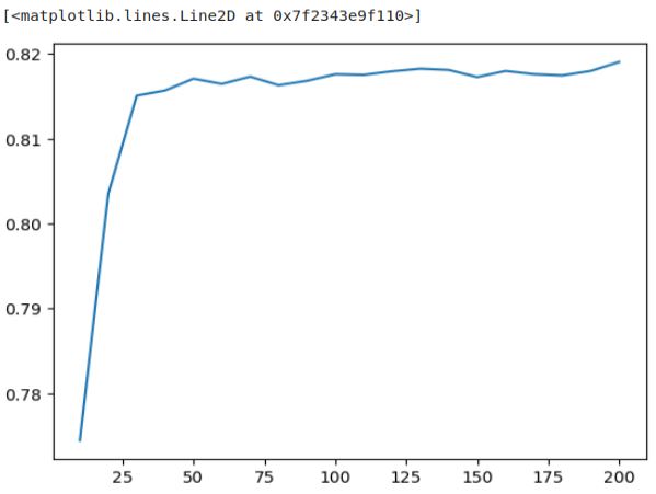 Let’s delve into the possibilities of fine-tuning our random forest model. To start, we’ll explore how the model’s performance evolves when we increase the number of estimators or models it employs. Our approach will involve iterating over a range of values to observe how the model’s performance improves or changes with an increasing number of trees.