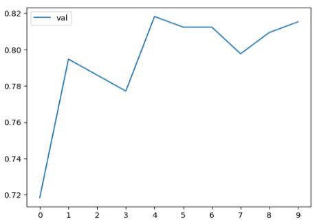 The training loss is decreasing and the accuracy for validation in the first epoch is 72%. Comparing the training accuracy with the validation accuracy we see both values increasing over time until epoch 3. There is a discrepancy between both accuracy values. There is a difference of about 10%. Another thing is that training accuracy keeps improving but on the validation data not so much. That could mean that the model starts to overfit already. When we look at validation accuracy we see that it oscillates around 80%. In the same time the accuracy on training data is very high (it’s almost 1). That are really good signs for an overfitting model. The results are saved in the history object. We’re interested in training accuracy and validation accuracy.