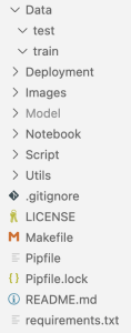 At the moment I’m still trying out a few options. I have included a picture from my last project as an example. I’ve used the Data folder to separate train and test data (and data for validation). The Deployment folder contains everything that is needed to deploy your model. Remember: Only an applied model is a good model; everything else is useless. Ensure that you deploy your model. I’ve put every image that used for documentation on readme files into the Image folder and in the Model folder you can find model files like *.h5, *.tflite, models in saved_model format, or *.sav files. The Notebook folder I use for Jupyter notebook files to do some preparation steps, EDA, model training and tuning. To train the final model I use Python files that are saved in the Script folder. Sometime I also use some utility functions – those files are saved in the Utils folder.